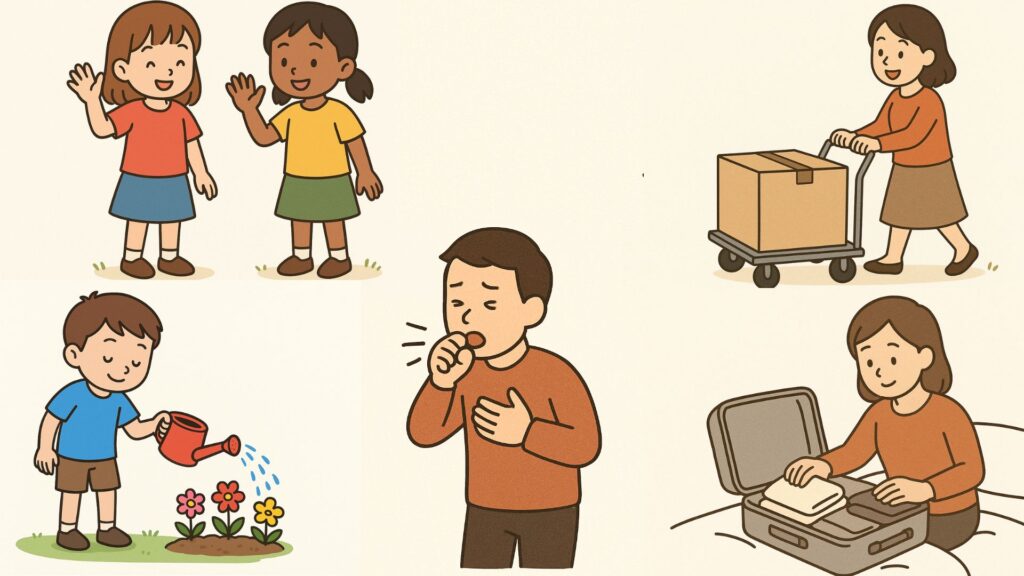 この記事では、私の多くの生徒の実際のつまずきや質問をもとに、英検®︎準2級のQuestion No.2(イラストに関する問い)でよく出る表現や答え方をわかりやすく整理しました。人物の動作を描写するQuestion No.2を得点源に変えるためのポイントを徹底解説します。